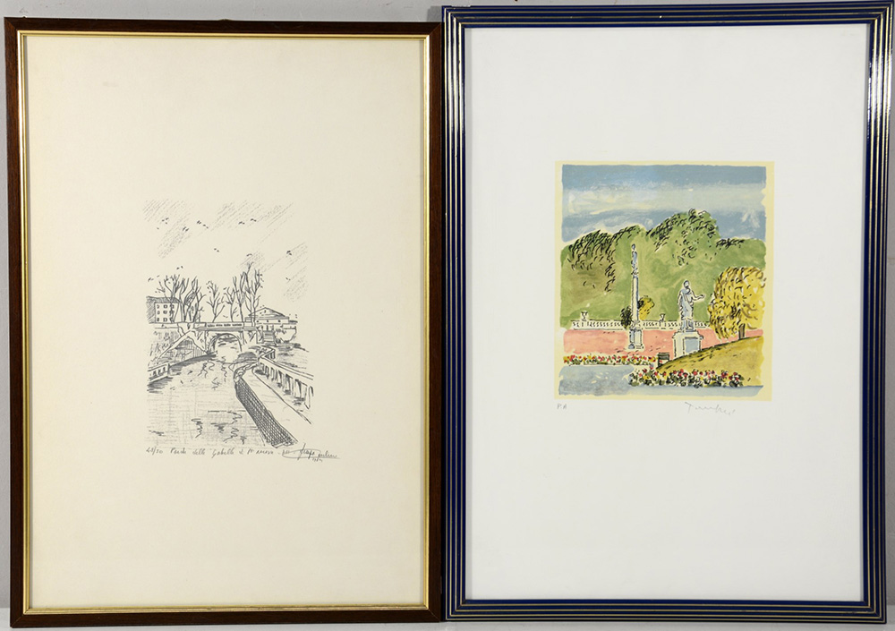 Scarpa, Tamburi "Paesaggi" lotto composto da due litografie, misure diverse. In cornici