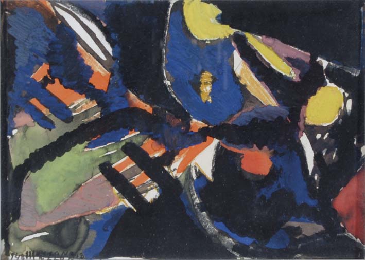 MAZZON GALLIANO Camisano Vicentino 1896 - Milano 1978 Composizione 1948 tempera su carta Misure: 23x33 firma in basso a sinistra