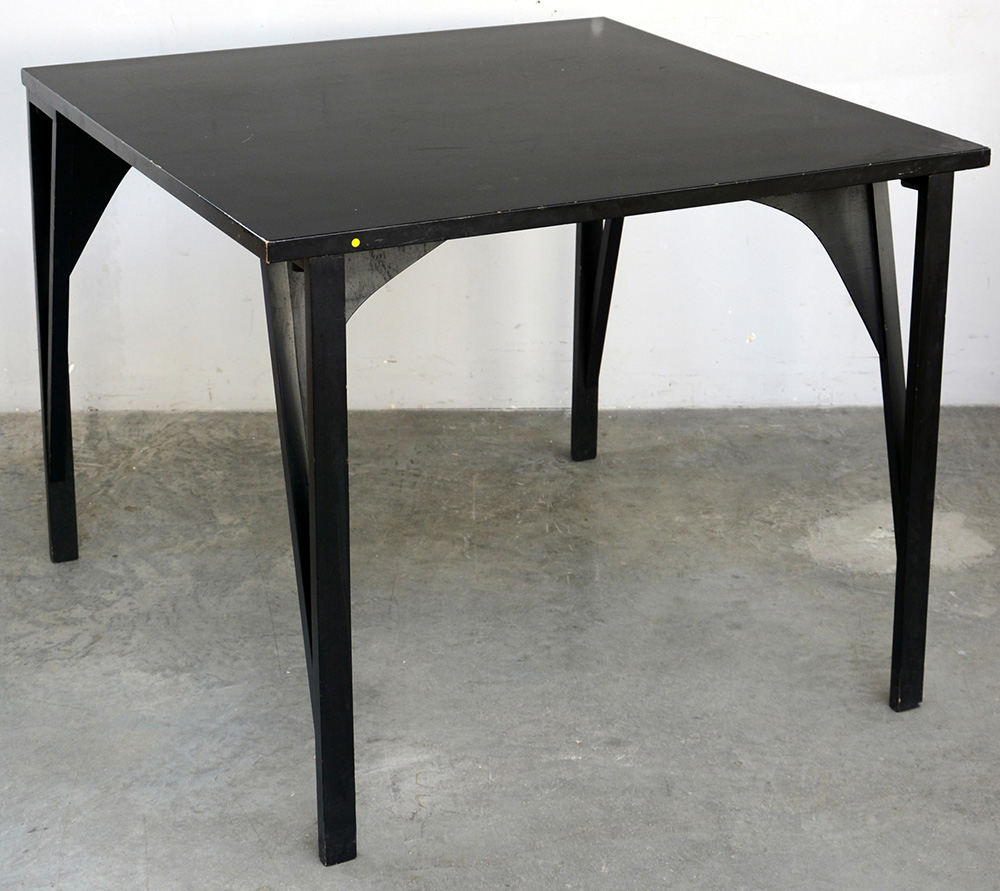 Achille Castiglioni (Milano 1918 - 2002) e Paolo Ferrari (Milano 1948) Tavolo modello "Trac". Produzione BBB Bonacina, Meda, 1976. Legno laccato nero (cm 90x82x90) Bibliografia: S. Polano, Achille Castiglioni: tutte le opere, 1938-2000, Electa, Milano 2001, p. 300