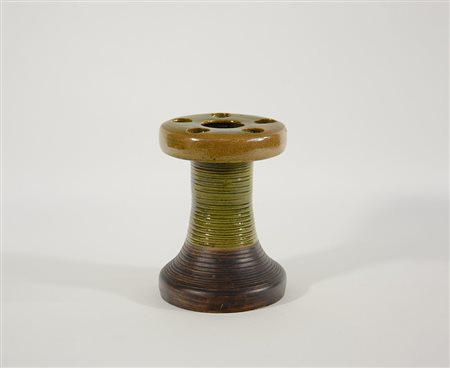 Rosanna Bianchi Piccoli Milano (1929- ) Alzata portacandele in gres policromo. Monogramma incusso sotto la base (h cm 21) (lievi difetti)