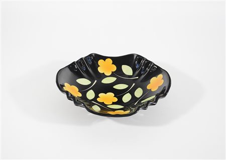 Rometti - Umbertide Ciotola in terracotta maiolicata decorata a smalti nero, arancione, verde e bianco. Anni 30, firmata sotto la base "Rometti Umbertide 1067" (d cm 26) (lievi difetti) Bibliografia: "Le ceramiche Rometti" a cura di Marinella Caputo e Enrico Mascelloni - Skira Editore, 2005, p. 101