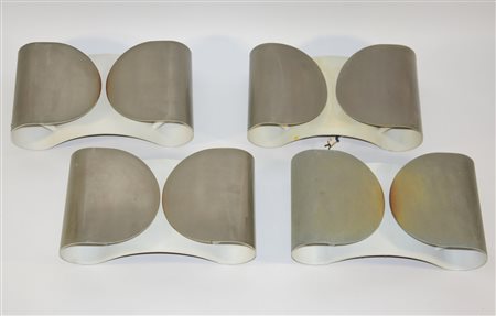 Tobia Scarpa (1935- ) Lotto composto da quattro appliques modello "Foglio". Produzione Flos, 1966. Struttura in alluminio e paralume in foglio d'acciaio stampato e piegato (l cm 38) (difetti) Bibliografia: A. Piva, Afra e Tobia Scarpa architetti e designers, A. Mondadori, Milano 1985, pp. 29, 139