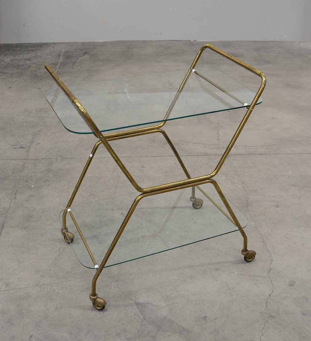 Carrello portavivande in ottone con due ripiani in vetro. Italia, sec XX (cm 65x80x43) (lievi difetti)