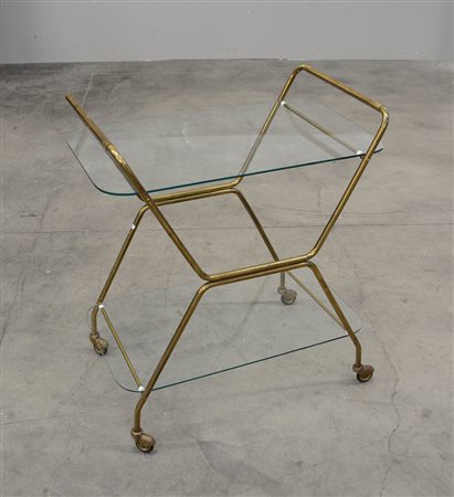Carrello portavivande in ottone con due ripiani in vetro. Italia, sec XX (cm...
