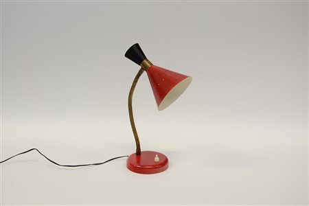 Lampada da tavolo in ottone e alluminio verniciato rosso e nero. Italia, sec XX (h cm 37) (lievi difetti)
