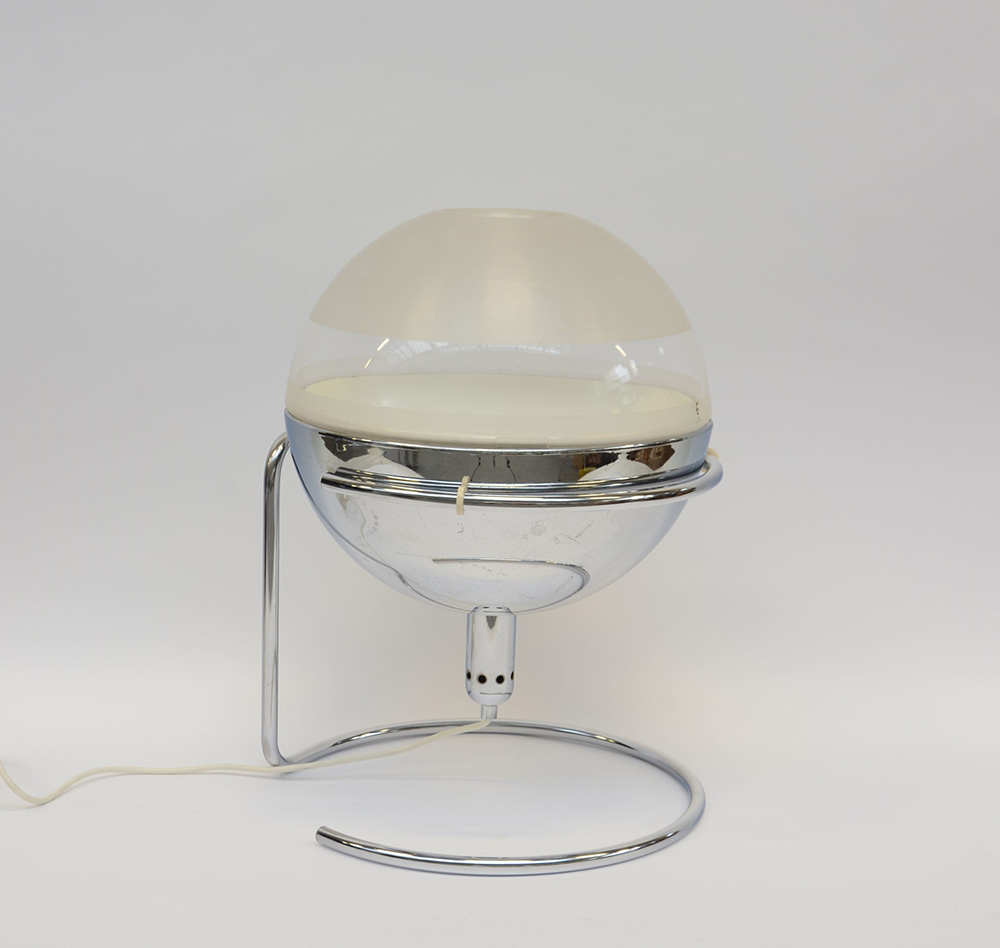 Fabio Lenci Roma (1935- ) Lampada da tavolo modello ìFocusî. Produzione Dh Guzzini, 1967 ca. Tubolare cromato e perspex (h cm 50, d cm 37) (lievi difetti) Bibliografia: "Abitare", n. 72, gennaio-febbraio 1979, p. 57; "Forme", n. 41, giugno 1972, pubblicit‡; G. Iliprandi, P. Molinari, Omnibook Italian Industrial Designers, Magnus, Fagnana 1985, p. 127