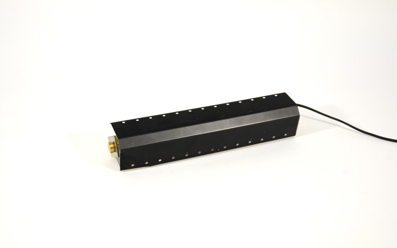 Lampada da parete in ottone con paralume metallico smaltato in nero. Italia...