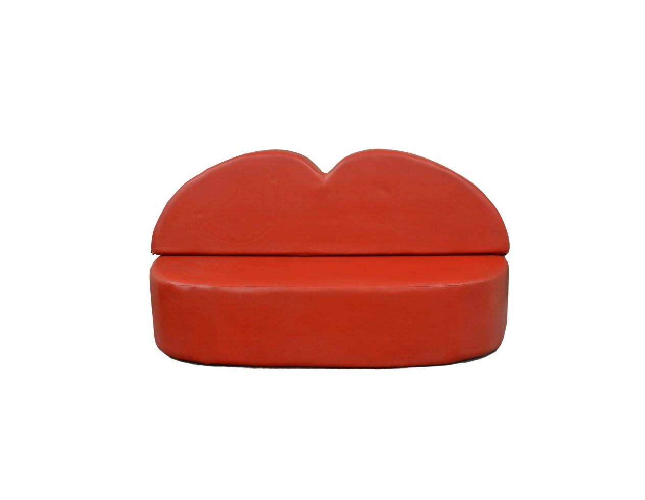 Divano in similpelle rossa a forma di bocca. Italia, anni 80 (cm 190x100x70) (lievi difetti)