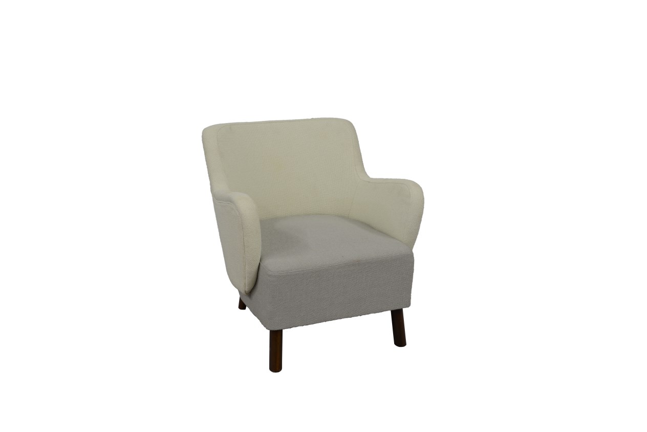 Poltrona imbottita con struttura in legno, rivestimento in tessuto grigio e panna. Italia, fine anni 60 (cm 81x83x75) (lievi difetti)