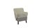 Poltrona imbottita con struttura in legno, rivestimento in tessuto grigio e...