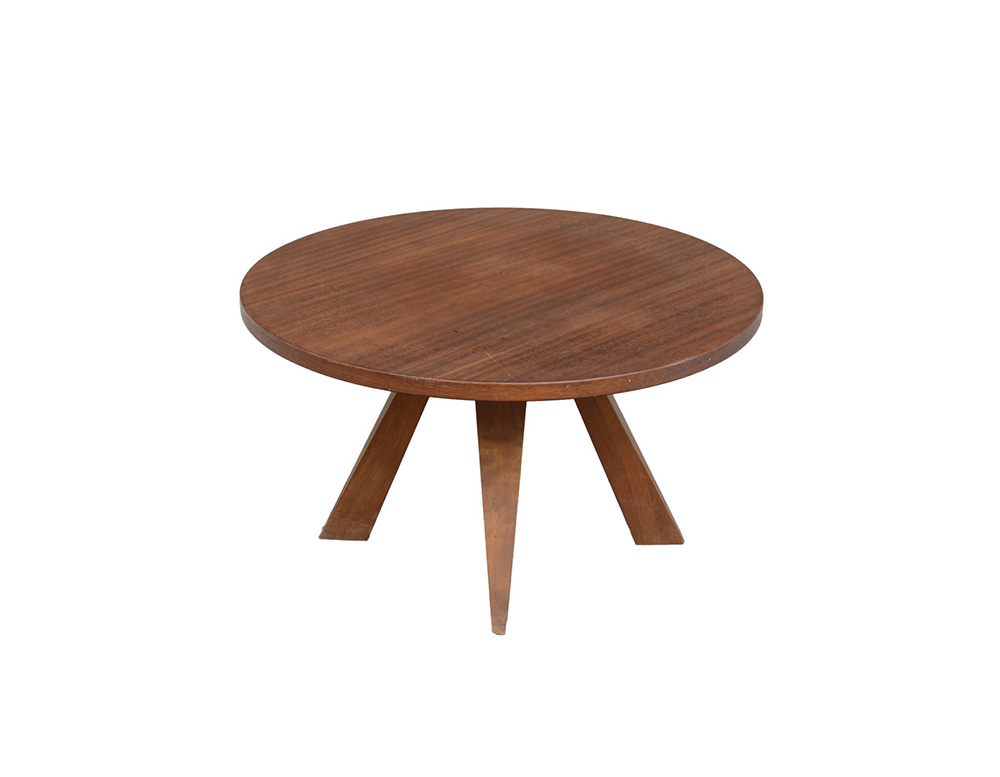 Tavolino in legno massello con piano circolare. Italia, anni 80 (d cm 80 h cm 45,5) (lievi difetti)