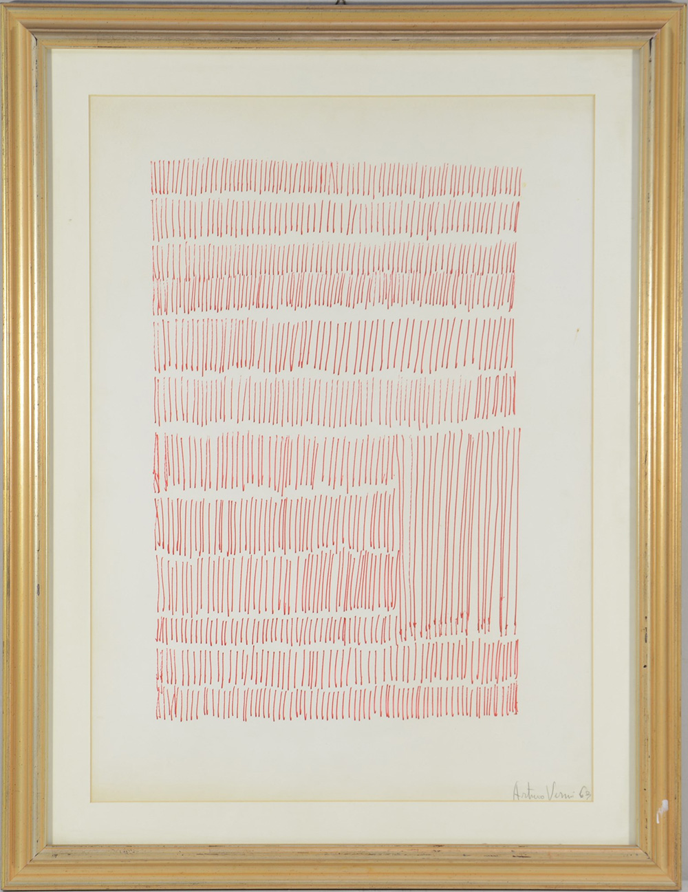 Vermi. "Composizione 63" pennarello su carta (cm 68,5x49). In cornice (lievi difetti)
