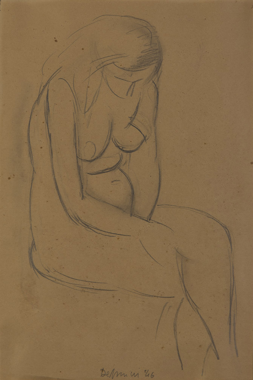 De Amicis "Nudo Femminile '46" matita su carta (cm 31x21) firmato e datato in basso al centro. In cornice