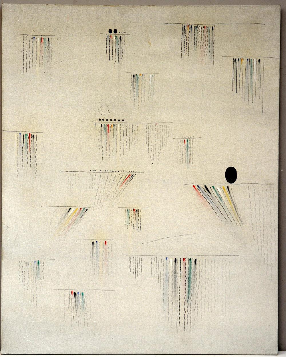 Gianni Madella (1931- ) "Bla Bla" 1974 tecnica mista su tela (cm 92x73). Firmato, datato e titolato al verso (lievi difetti)