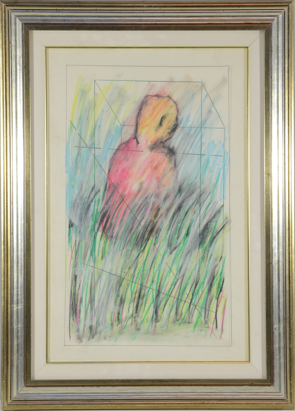 Firma indecifrata "Studio scolastico" 64/66, tecnica mista su carta intelata (cm 57x37) Si allega autentica su fotografia. In cornice