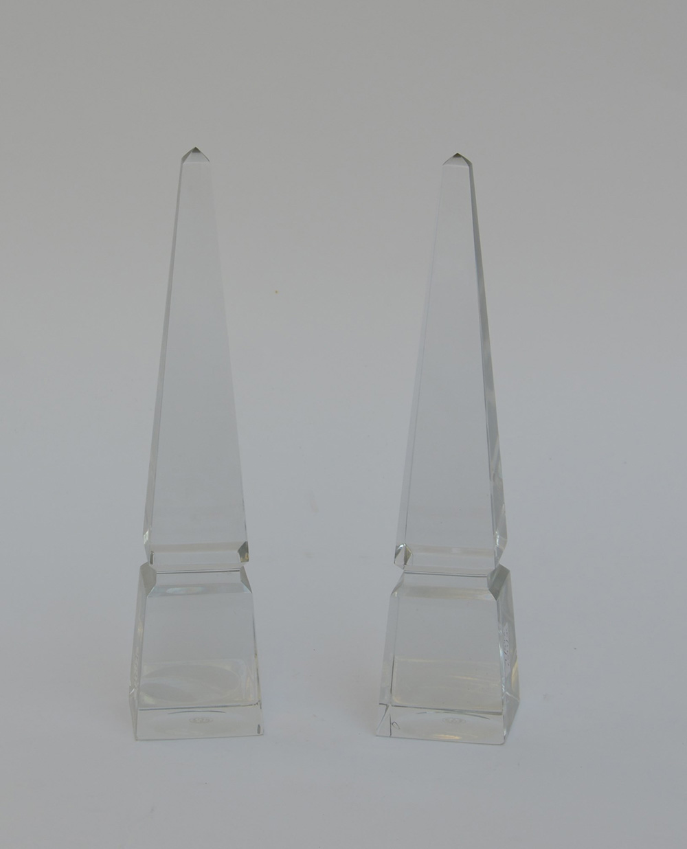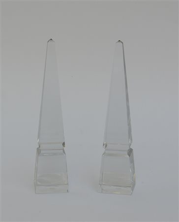 Coppia di obelischi in cristallo Baccarat. Sec XX (h. cm 25) (difetti)