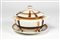 Lotto composto da una zuppiera con coperchio e un piatto aerografati nei...