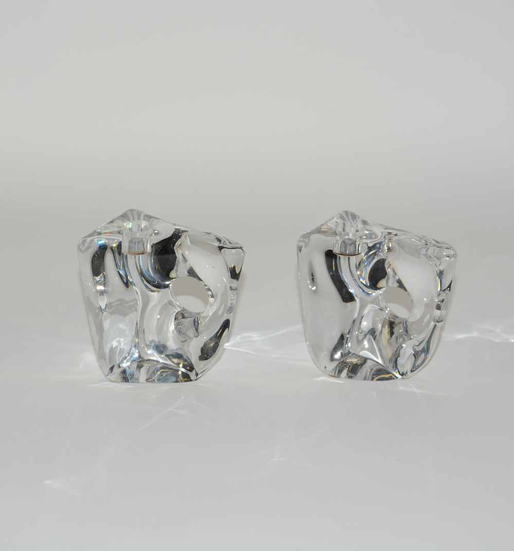 Daum, Francia Coppia di candelieri in vetro massello. Firma a punta sotto la base (h cm 10)