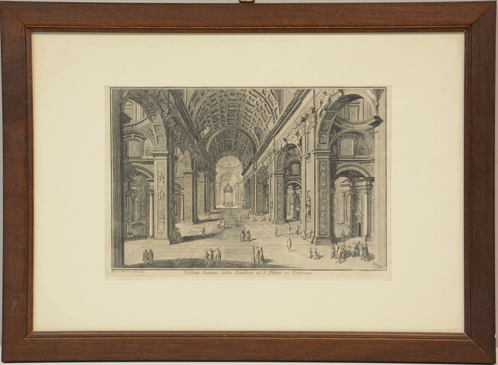 Piranesi ñ Vasi sec.XVIII , veduta interna della Basilica di S.Pietro in Vaticano. Acquaforte (cm 22x32) in cornice. (difetti)