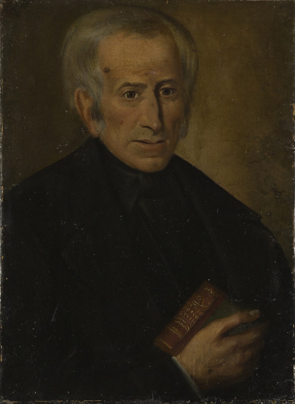 Scuola del sec.XIX "Ritratto di uomo con libro" olio su tela (cm.53x38) in cornice.(difetti e restauri)