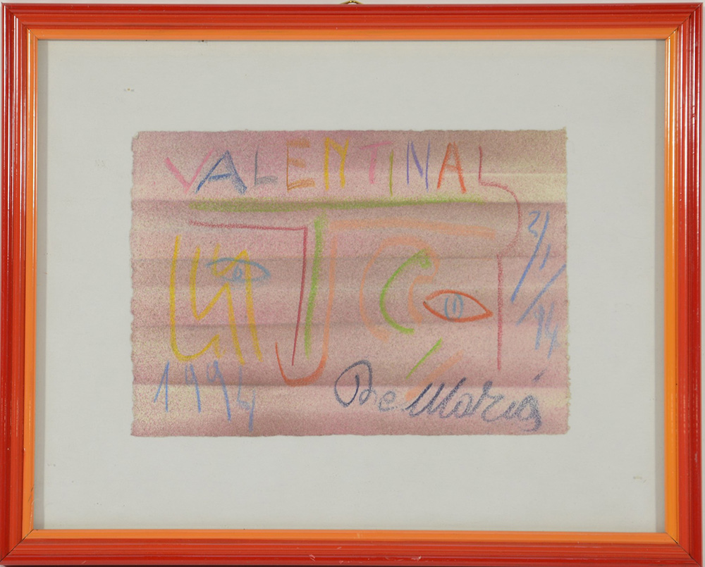 De Maria "Valentina 1994" Tecnica mista su carta (cm 12x17). Firmato in basso a destra. In cornice