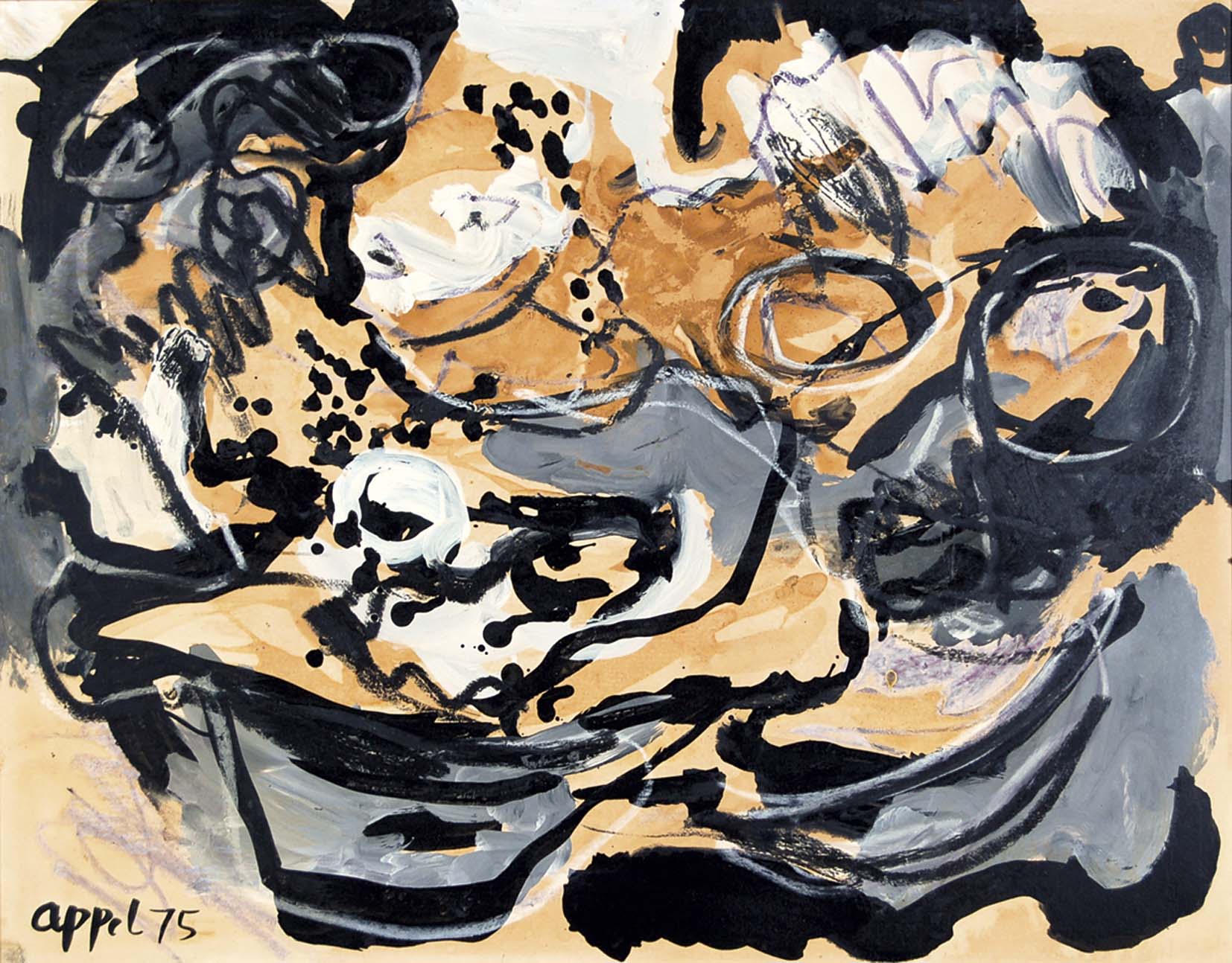 APPEL KAREL Amsterdam 1921 - Zurigo 2006 Composition 1975 olio e tecnica mista su carta intelata Misure: 48,3x61 firma e data in basso a sinistra provenienza Sid Deutsch Gallery New York, Fabian Carlsson Gallery Londra, Christies Londra