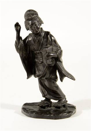 Suonatrice in bronzo firmato alla base (h. 20,5 cm.)