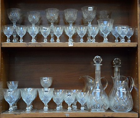 Servizio di bicchieri in cristallo sfaccettato, anni '60 circa, composto da...