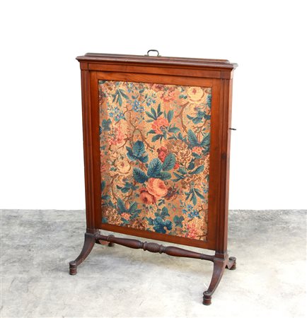 Parascintille in noce con montanti scanalati, gambe mosse riunite da traversa tornita. Sec. XIX (difetti)