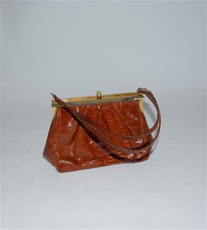 Piccola borsa a braccio in pelle di rettile color tabacco