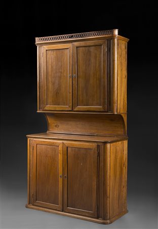 Mobile con alzata in noce con parte superiore a due ante, decorata con ringhiera traforata. Parte inferiore a due sportelli. Veneto, met‡ sec. XIX (cm 128x234x53) (difetti)