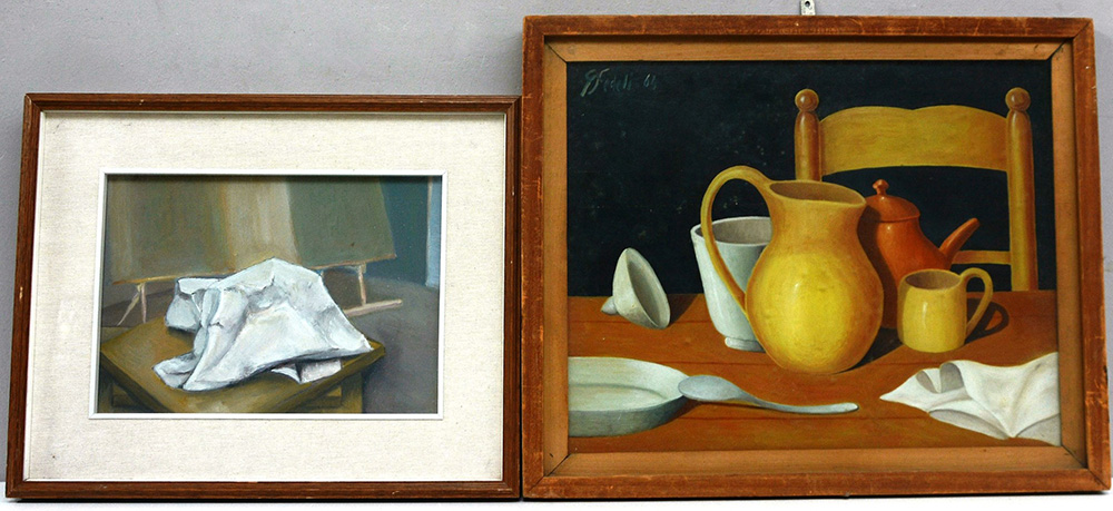 Lotto di due dipinti ad olio di autori differenti raffiguranti "Nature morte" (cm 40x50 e 25x35), in cornici (lievi difetti)