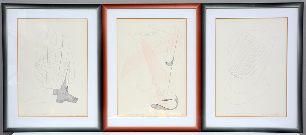 Rino Crivelli Tre tecniche miste, tutte firmate e datate 1982. In cornici