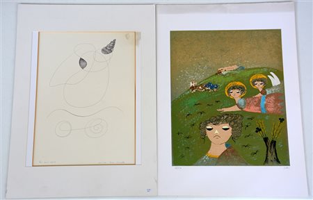 Lotto composto da una tecnica mista di Rino Crivelli e da una serigrafia...