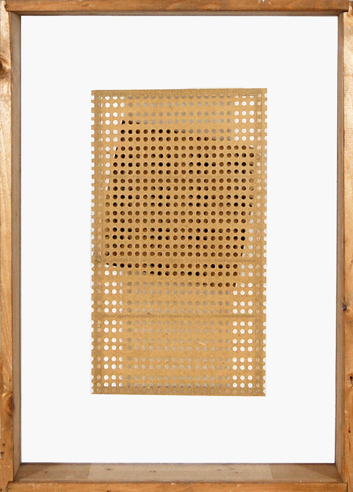BIASI ALBERTO Padova 1937 Trama 1959 trama in carta di paglia entro teca Misure: 40x22x6 trama 64x45,5x9,5 teca firma Alberto Biasi e timbro Gruppo Enne al retro autentica dell'Autore nr. Reg CO 35 su foto