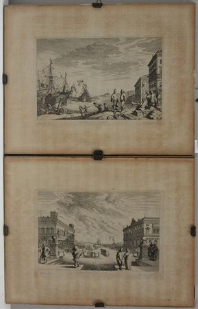 Melchiorre Kussel "ìScorci veneziani" coppia di acqueforti (cm 25x32) In...