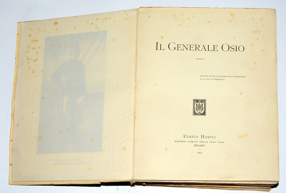 (Libri) Il generale Osio. Milano, Ulrico Hoepli, 1909. Edizione numerata con illustrazioni e riproduzioni di documenti dell'epoca (difetti)