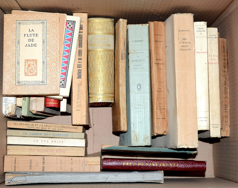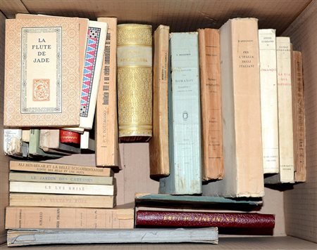 (Libri) Lotto composto da due cartoni contenenti numerose pubblicazioni di svariato argomento, fra cui opere di poesia e letteratura (difetti)