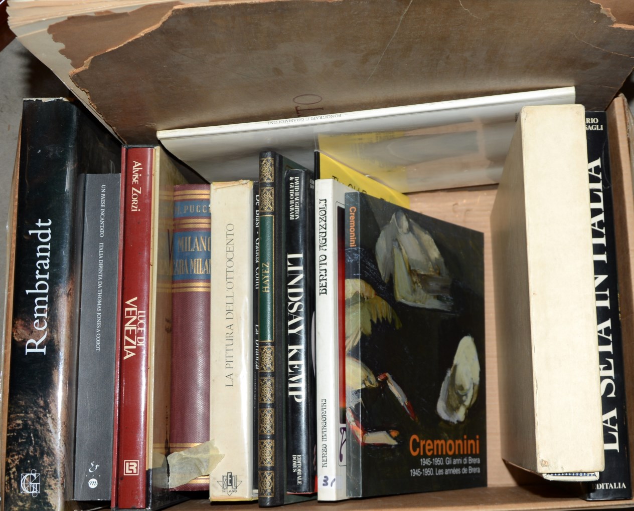 (Libri) Cartone contenente numerosi volumi principalmente d'arte