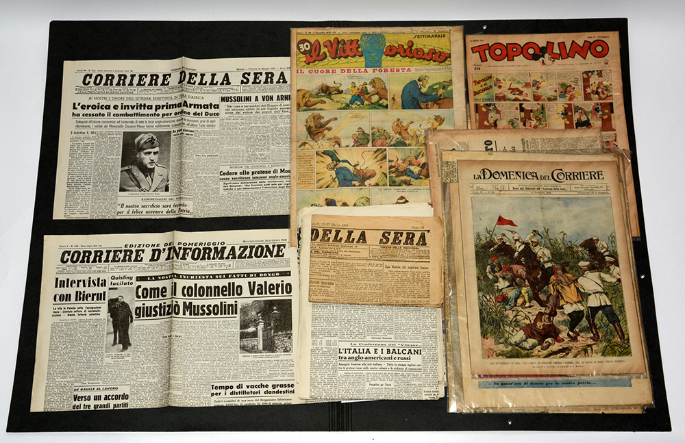 Cartella contenente numerosi giornali con avvenimenti storici del 1900 (difetti)