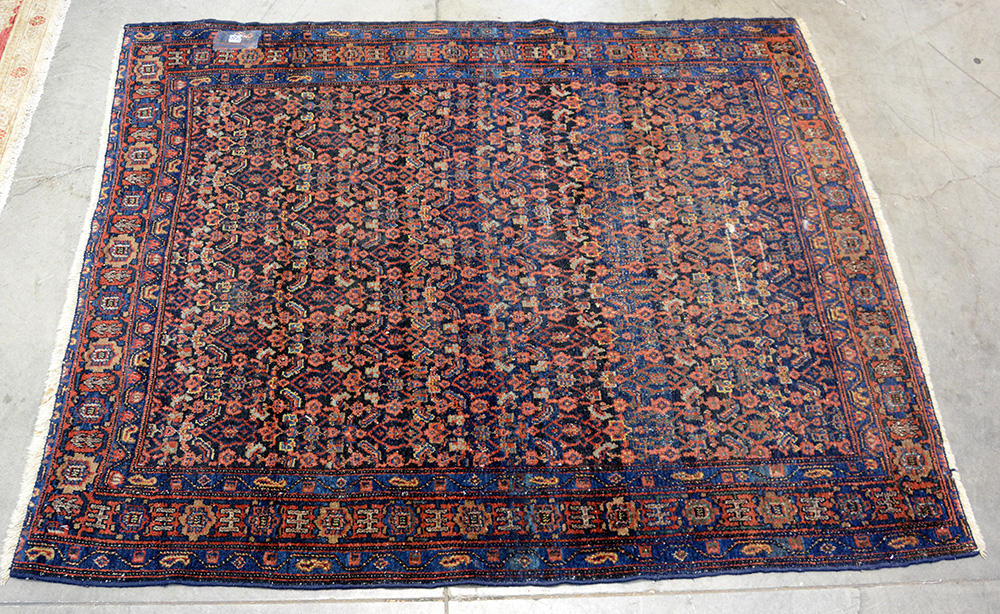 Tappeto Malayer, Persia secolo XX. Disegno Herati su fondo blu notte (137x111) (difetti)