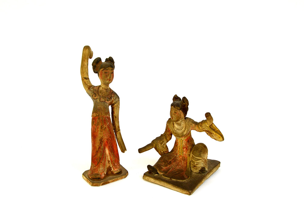 Cina, sec. XXDue figure in stile "tang" di danzatrici (h. 26 cm.) (difetti e mancanze)