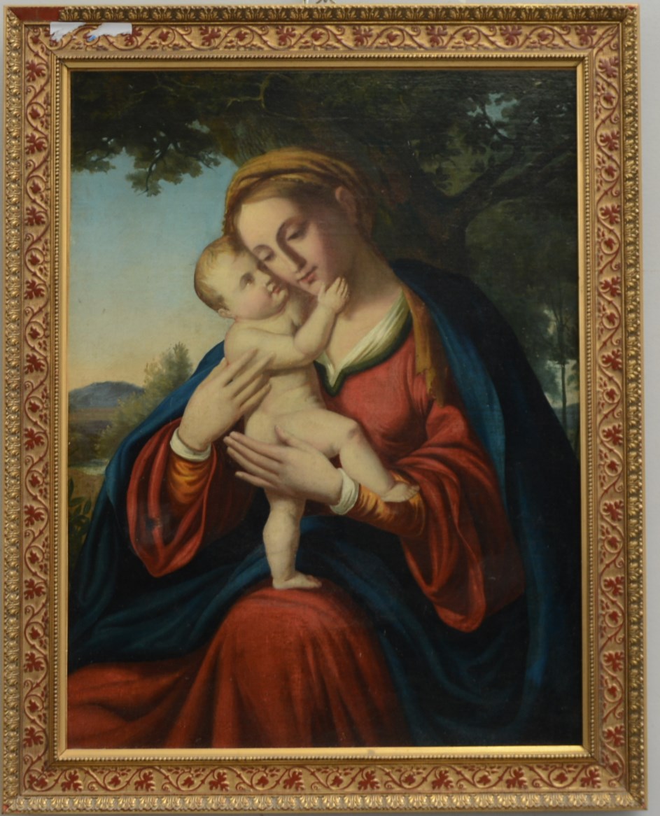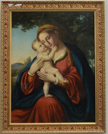 Ignoto "Madonna col Bambino" olio su tela (cm 62x47) secolo XIX. In cornice