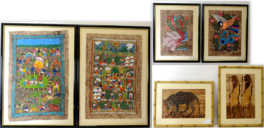 Lotto di sei quadri di soggetto, tecnica e dimensioni differenti, in cornici...