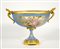 Manifattura francese. Ciotola biansata in porcellana a fondo azzurro decorata...
