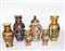 Lotto composto da cinque vasi e una potiche in ceramica policroma di fattura orientale, Cina, sec. XX (h max cm 32) (difetti)