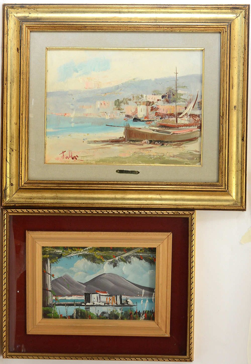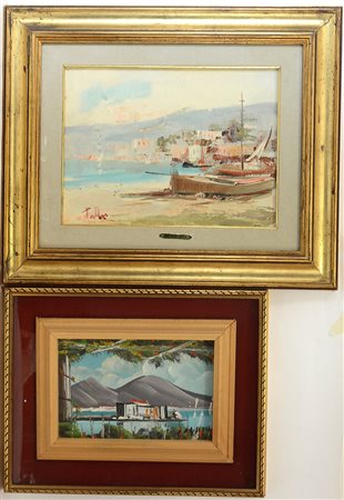 Firme indecifrate, lotto di due dipinti ad olio raffiguranti paesaggi, misure differenti, in cornici