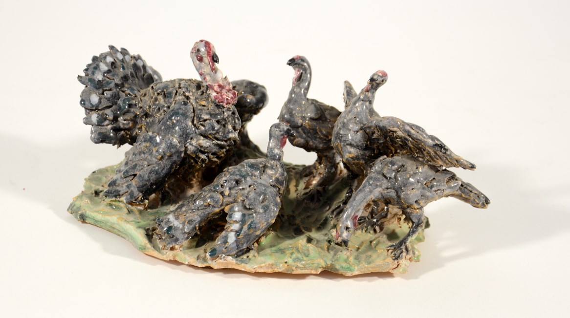 Firma indecifrata, "Tacchini", gruppo in terracotta policroma firmata in...