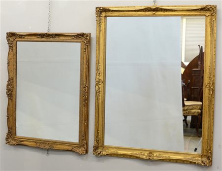 Due specchiere dorate con decoro rocailles (cm 114x88)