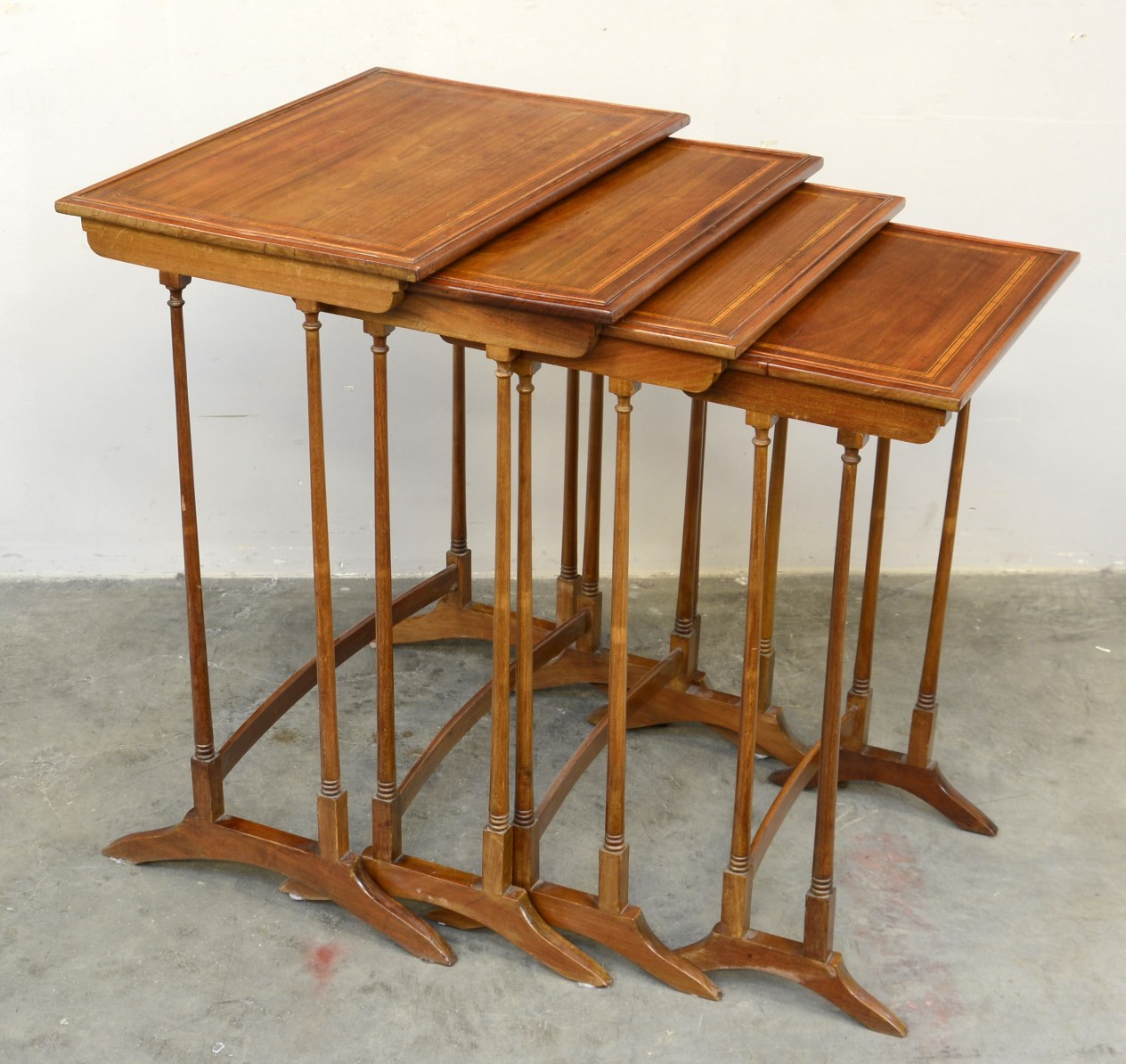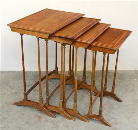 Tavolino a nido composto da quattro piccoli tavoli a scomparsa con profili...